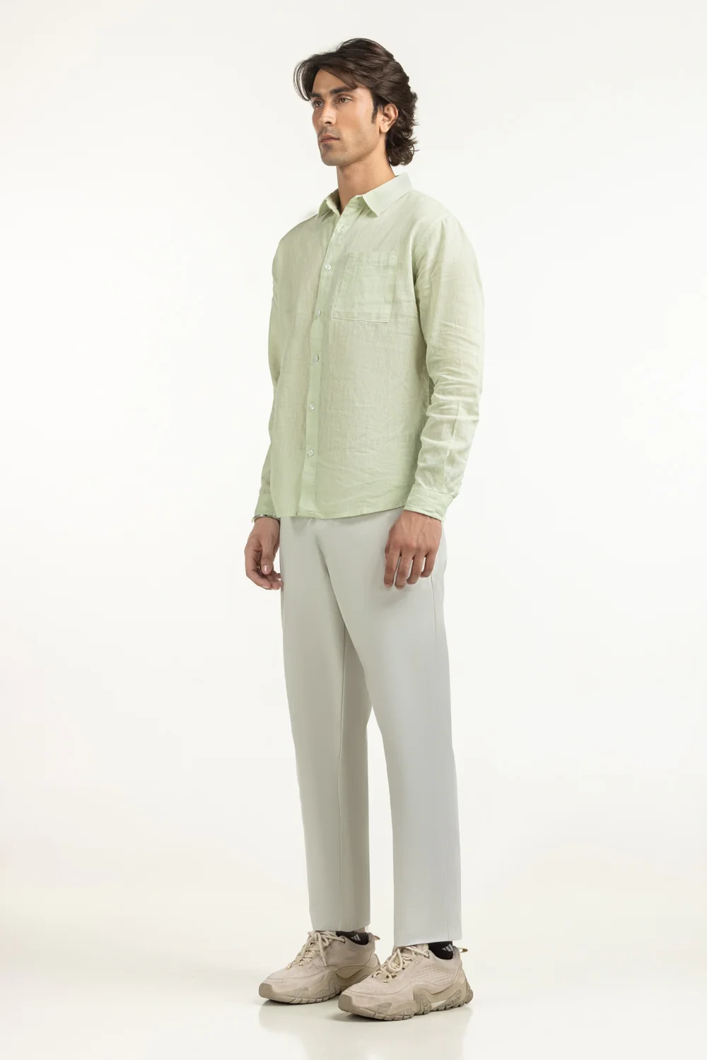 This casual shirt in a light green color, blends timeless ease with modern finesse. The cotton-linen fabric keeps it feather-light and breathable, making it a true summer essential. Its regular fit ensures comfort while preserving a clean silhouette.